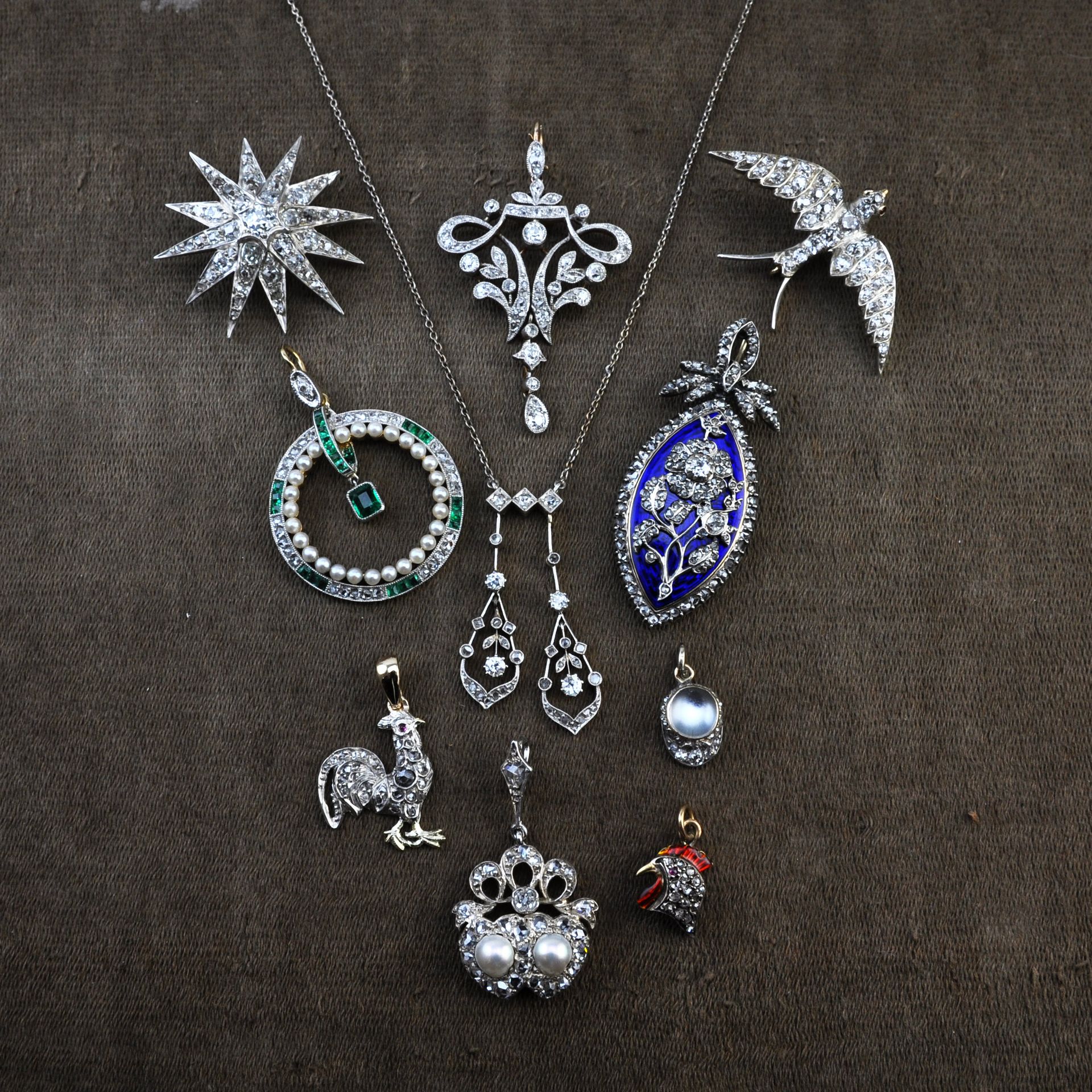 An eclectic range of brooch to pendant conversion pieces which we have completed in recent weeks. It is always a bit painful making the decision to mess around with an antique piece of jewellery but it is nothing new. Jewellery has been converted, reworked and re-purposed for centuries. As long as it is done honestly, I cannot see a problem doing so if it makes a piece more wearable and suitable to current tendencies.
